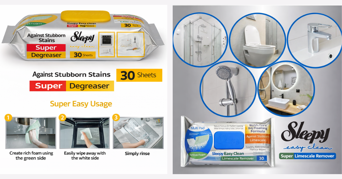 Sleepy Oil Degreaser & Limescale Remover products are designed for powerful, effortless cleaning in modern homes. Developed to tackle the toughest kitchen grease and stubborn limescale buildup, Sleepy cleaning wipes deliver fast results without heavy scrubbing.