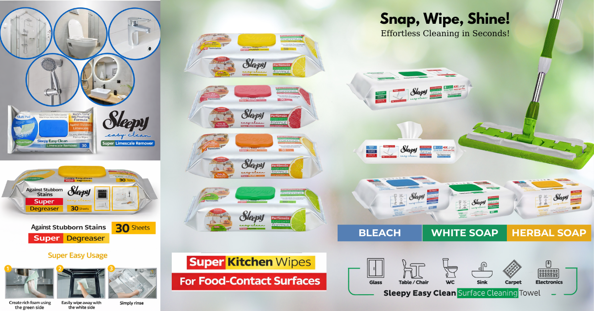 Sleepy Surface Cleaning Wipes provide fast and effective cleaning on all surfaces—from the kitchen and bathroom to tables, carpets, and electronics. With different formula options, they make hygiene easier and offer maximum convenience for daily use.
